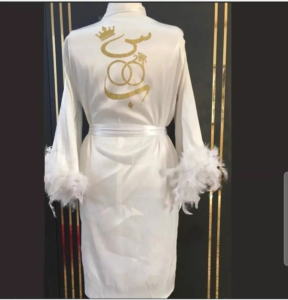 كوني أنيقة في يوم العمر وارتدي روب عرايس تطريز بالاسم من خامة الحرير الناعمة مريح باللبس ومناسب للتجهيزات الأولية عند تصفيف الشعر